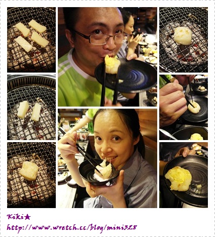 先把年糕烤的軟一點,再把年糕4塊用再一起