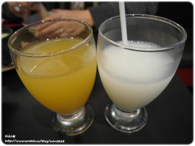 左邊是水蜜桃汁 我平常幾乎不喝飲料的 都是跟朋友出來吃飯才會喝