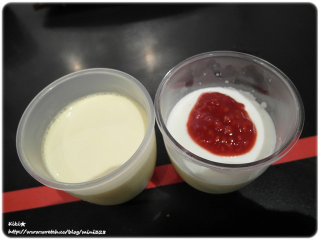 就會上甜點 左邊是布丁 右邊是草莓奶酪